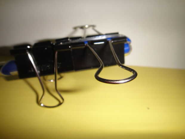 12) luego tomar otro clip de carpeta tamaño mismo y adjuntarlo a 0,5 cm a 1 cm vacío dejado hacia fuera en el clip de su casquillo de la pluma, porque se une a sólo un poco de la tapa de la pluma de un lado y la adjunta al cuerpo de la pluma a lo largo hasta el final del clip binder la parte superior del clip debe formar una ligera forma de V. (Ahora se hace la mayor parte de su sección de área de la pluma).