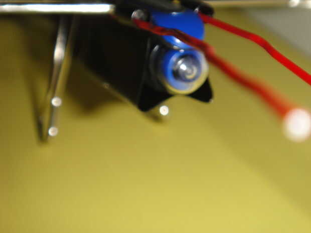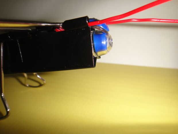 6) tomar el pequeño enderezado clip e introduzca uno de sus puntos (extremos) para tapar la brecha entre los dos (para que apriete el brazo se mueva mucho), tienes que introducir un poco más de cuarto. Esto estabilizar el ángulo de 180 grados y crear un mayor brazo de ballesta.