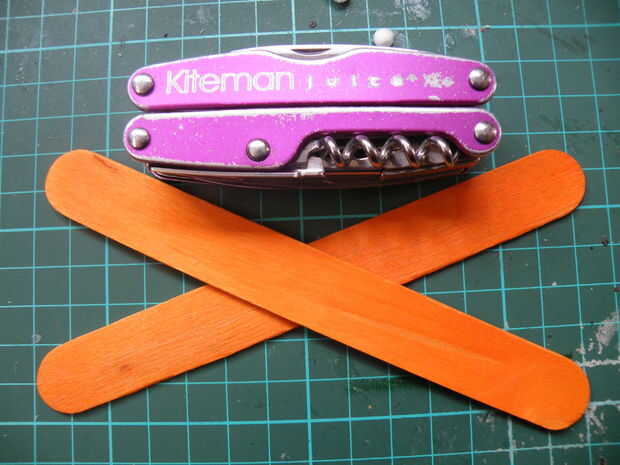 Los requisitos son mínimos - dos palos de paleta o arte y algo que les de trabajo. Mi Leatherman tiene un archivo, o usted podría utilizar una herramienta giratoria con un disco de corte o lijado.