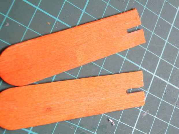 Otra vez, las ranuras deben ser bastante amplia, pero esta vez debe ser ligeramente más largos que la mitad de la anchura del palito.