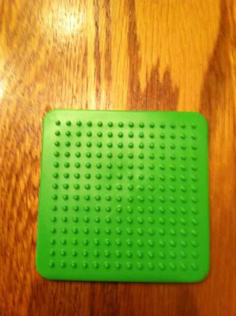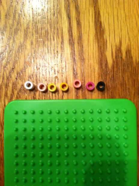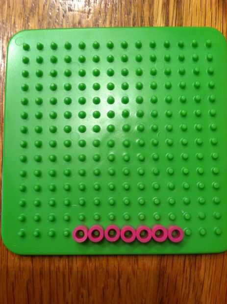 Empezar colocando 7 perlas de color rosas o azul en una fila en la parte inferior de la plantilla