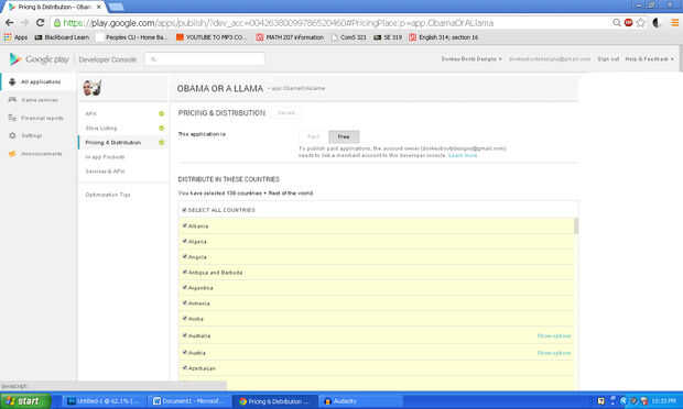 Por último, haga clic en la pestaña de "Precios y distribución", donde usted seleccionará pagada o gratis, países de distribución y comprobar leyes de exportación de las cajas diciendo que su aplicación cumple con pautas de contenido y Estados Unidos.