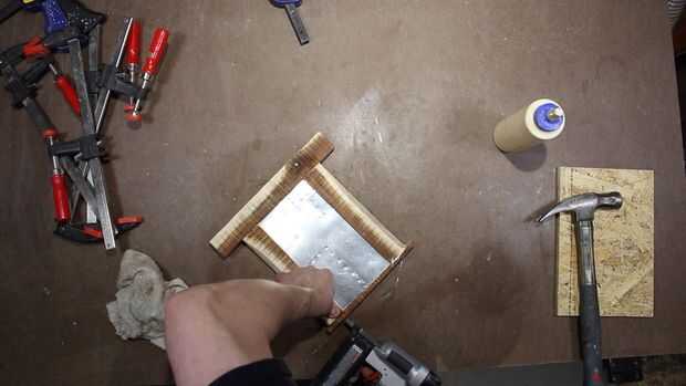 3. ejecutar algo de madera del pegamento a lo largo de la parte superior del panel OSB y colóquelo contra la cabecera... Asegúrese de que el metal en la ranura.