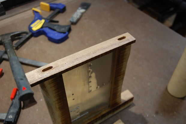 Una vez seco el pegamento, agregué dominó hasta el fondo... como básicamente a través de espigas. De overkill, pero otra vez se trata de fuera y no estoy seguro si será cubierto o en los elementos.