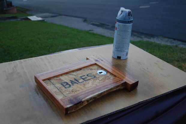 Añadir un gancho de ojo de la cerradura DIY arandela en la parte posterior, pero no estoy seguro si se va a utilizar. No estoy seguro si robo es una preocupación, que requeriría más seguros métodos de montaje (tornillos o clavos). Vamos a ver lo que pasa que supongo.