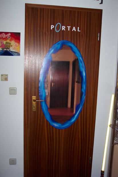 Fije sus portales en la superficie que desea ser portaled, que funciona mejor cuando se utilizan 5-10 unidades de cinta de doble cara, 2 de ellos en el medio y el resto cerca de la frontera. En primer lugar, use solamente las 2 piezas de cinta en la parte superior para solucionarlo y ver si cuelga correctamente. Entonces usted puede fijar con las otras cintas.