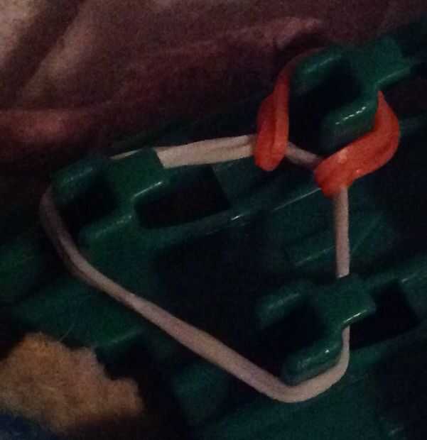 he modificado este video tutorial para crear una pulsera bigote! ¡ Disfrute!Paso 1: Se necesita: una tira de las clavijas de un telar del arco iris, dos colores de bandas (mina son de color rojo para las bandas de encuadre y plata para las bandas de