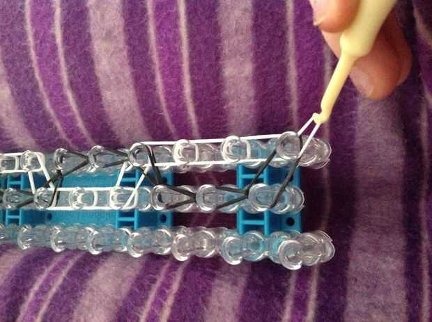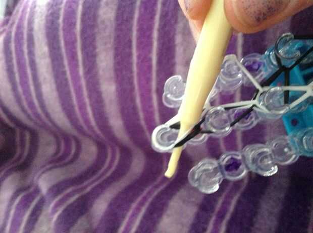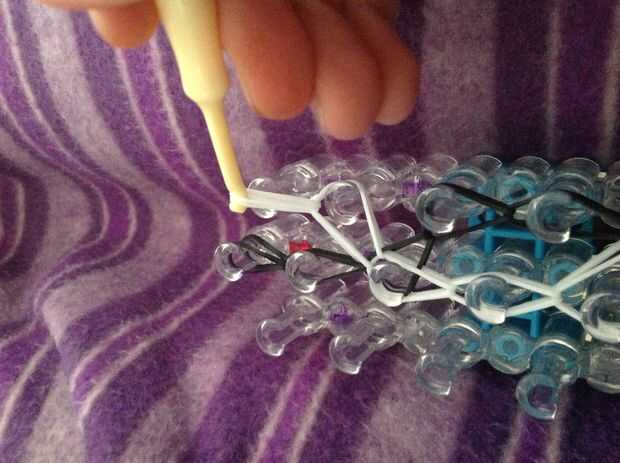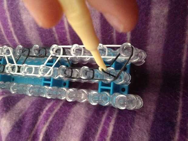 Paso 1: Lo que necesitará Telar del arco irisGanchoBandasClip de C o SPaso 2: Colocar bandas Pt 1 Asegúrese de que su telar es compensado.Coloque sus bandas en forma de "v"Puso sus bandas alrededor del perímetro del telarPaso 3: Colocación de ba