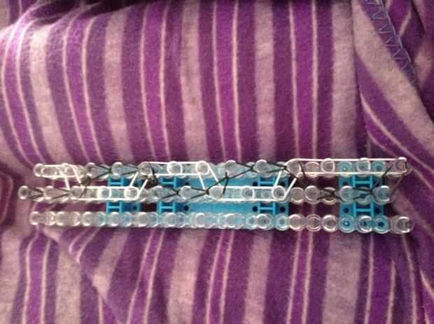 Esta pulsera consiste en tres círculos que han sido ganchillo juntos. Utiliza el mismo principio utilizado para tejer de mobius, pero normalmente siete anillos se unen de esta manera tejiendo unos en los otros una vez. Para esta pulsera, tejió los cí