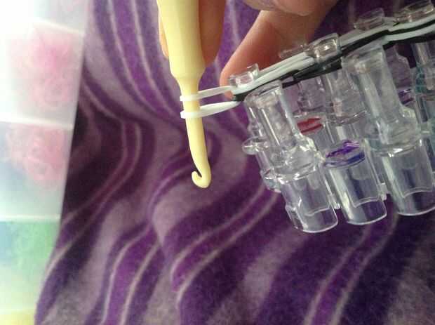 Paso 1: Lo que necesitará Telar del arco irisGanchoBandasClip de C o SPaso 2: Colocar bandas Pt 1 Asegúrese de que su telar es compensado.Coloque sus bandas en forma de "v"Puso sus bandas alrededor del perímetro del telarPaso 3: Colocación de ba