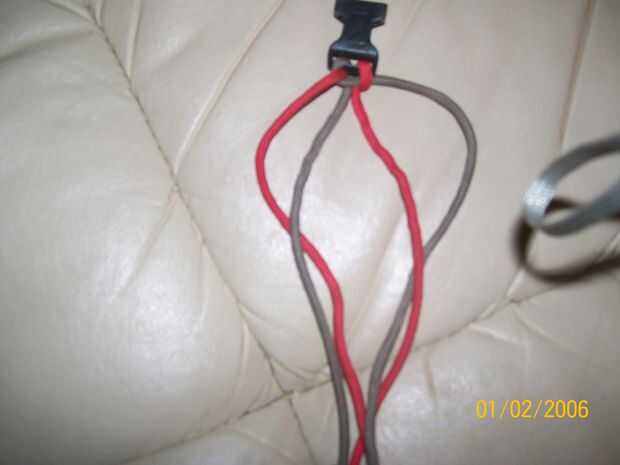 Para iniciar el tejido solo vas a quiere hacer el tejido básico de la cobra. Comprobaremos su medida aquí, porque no se puede después de esto. Luego, se extienden los filamentos de dos centro apart, coge los dos extremos de trabajo y tire de ellas hacia atrás a través de las hebras del dos centro.