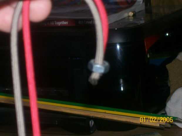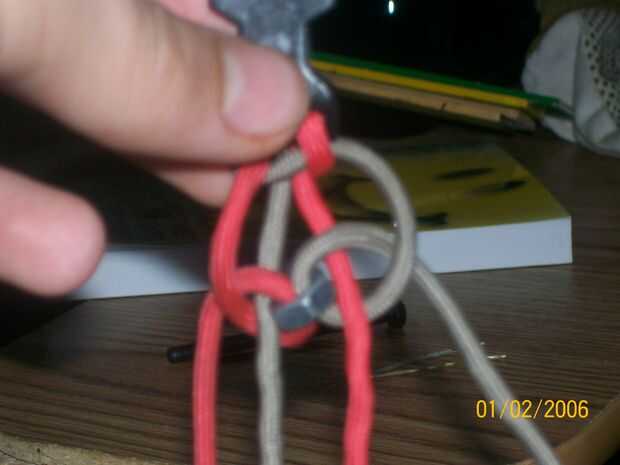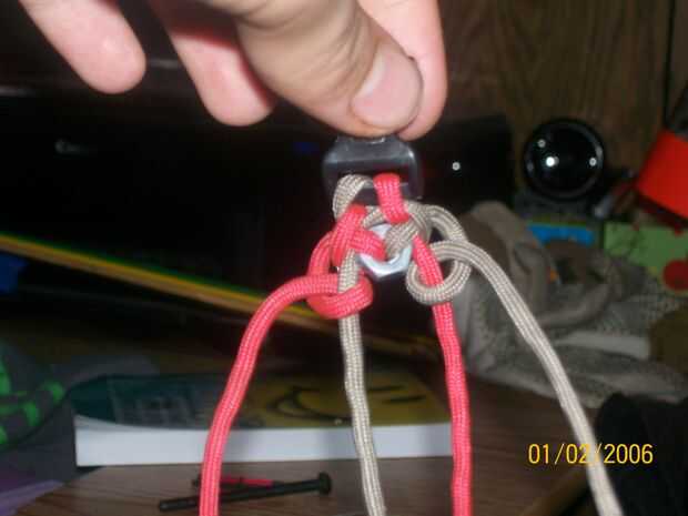 Para agregar las tuercas hexagonales, sólo haz una tuerca hexagonal e ir a los extremos de los cables de trabajo. Intenta Deslice la tuerca en los dos cables, pero si no puedes, simplemente gire la tuerca hacia la derecha, y debe sí mismo enroscar. Esta parte es complicada y difícil de explicar, pero las imágenes deberían ayudar. Después de recibir la tuerca hasta el punto que usted necesita, ejecute los dos extremos de trabajo a través de los lazos a ambos lados de los hilos del centro. El extremo izquierdo del trabajo pasa por el bucle izquierdo y el derecho va a través del lazo de la derecha. Apriete. Entonces, para fijar la tuerca en la pulsera, enrolle los extremos de trabajo alrededor de la línea de centro que es la más cercana a él y a continuación, pase el cable por sí mismo. Apriete. Repita los pasos tres y cuatro hasta llegar al final de la pulsera, pero no hacer la cobra de la armadura de paso tres!