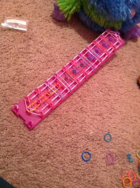 Al colocar las bandas Asegúrese de hacerlo bien. Asegúrese de que la flecha está apuntando lejos de usted. La imagen muestra cómo debe buscar. Luego coge otro color y uno saltar el hoyo horizontal en el telar de hacer esto hasta el final. Ahora puedes escoger cualquier color y ponen encima de la media hasta el final. Ahora su lista al crochet!