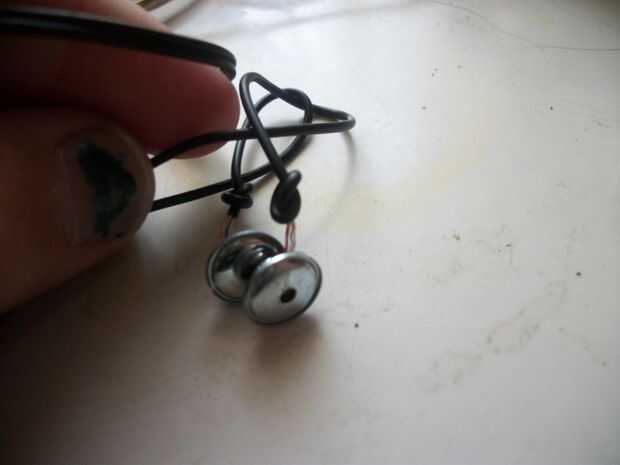 Pasé lo que quedaba de las piezas de plástico hacia abajo el cordón cuanto pude moverlos para conseguirlos fuera del camino. No necesitas hacer esto si los pedacitos de plástico están intactos.