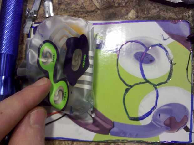 Esto es se entra el cuchillo del exacto, teniendo cuidado de no cortarse, o la tabla en su proyecto, seguir adelante y cortar los agujeros. (no olvide añadir ningún extra hoyos sus necesidades de radio, de LED o cualquier cosa que podría estar en la radio)