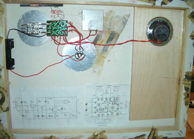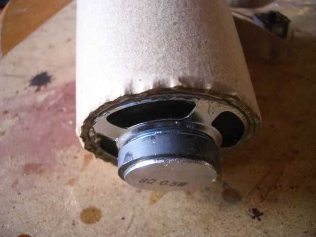 Un pedazo de madera da la lona estabilidad suficiente para llevar el altavoz a. Se habían pegado así.