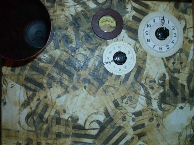 Pegar las caras de reloj sobre el lienzo y me adjunta las perillas con los punteros.