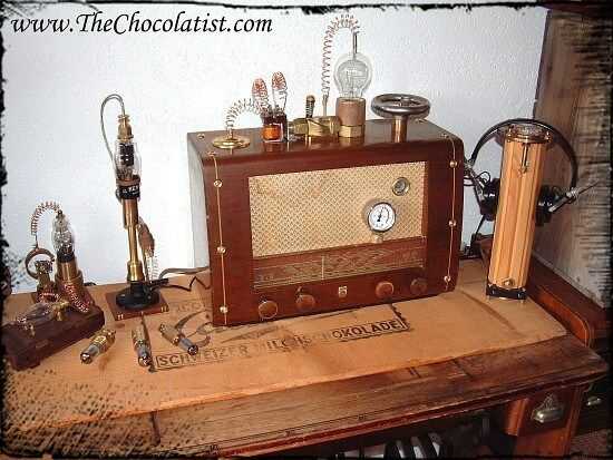 un par de meses atrás encontré una radio x-tal llamado "MysterySet". Junto con un capacitor variable y un diodo Schottky que edificó un estilo Punk de vapor Radio.Para la cubierta he utilizado una cúpula de cristal para relojes. Y para afinar un