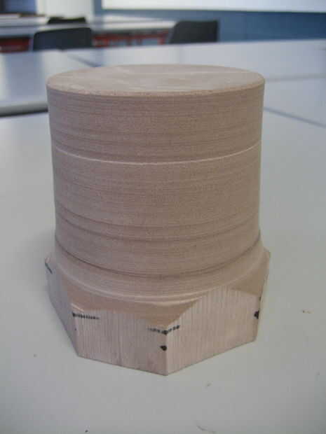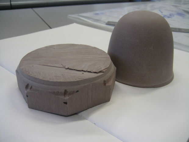 El componente superior fue hecho en el torno, se hace usando alta densidad poliestireno de modelado. He utilizado el torno para crear la forma deseada de la cúpula. La base de la cúpula era 77 milímetros.