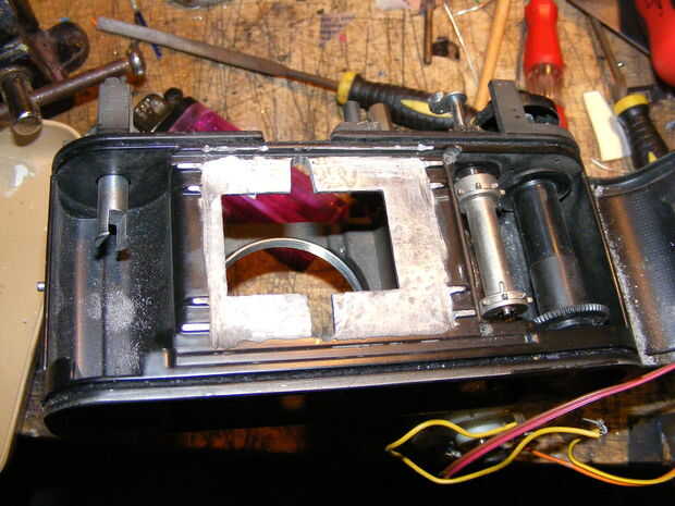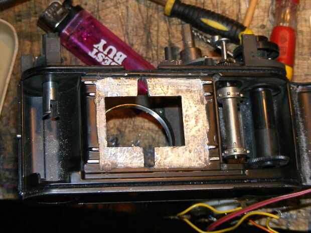 quería un corte de altura completa, que cubre las perforaciones. tan algunos dremmeling con el disco de fibra, es el accesorio más rápido para ellos como Ángel mini amoladora disco, gafas. He leído que bebida puede hacer buen metal para la raja. he intentado pero es un poco basura en cambio tuve algunas aluminio de no sé dónde, tal vez un mm de espesor anotó con un bisturí y lo quebró. utiliza epoxi para poner en marcha y el cuerpo entonces fillerd alrededor de los bordes