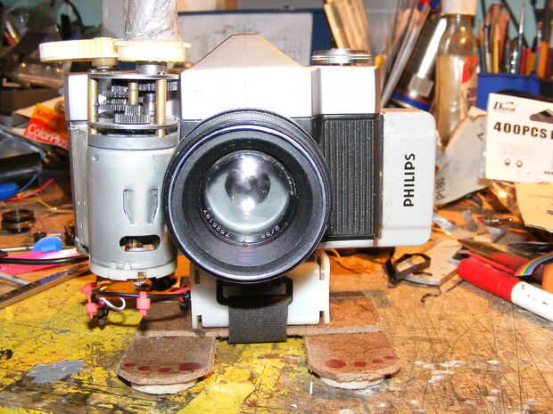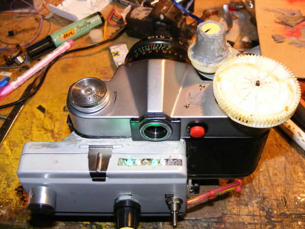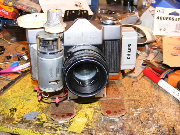 modify and engrave the logo. Taladre un agujero en la parte posterior para un disparador y alimente el alambre hacia la fuente de alimentación de regulador de velocidad del motor, tenía que encontrar un viejo estilo helios dan como la base es más estrecha que la mayoría, otros se deje atrapar en el motor. obtener alguna solución temporal de la batería, acción de la correa de velcro, destacaría pies permiten reposar hasta otra manera cae en su face.time para ejecutar una prueba rápida de roll.and ver que pasa. utiliza película kodak color 200 neg de poundland.