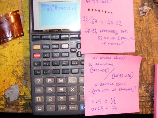 una vuelta del engranaje del piñón es de 48,5 exposiciones