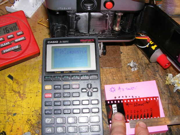 estaba midiendo el tiempo de las 10 revoluciones y multiplicando la longitud de la película por 10, esto hace que los valores obtener promedios de 10 menos error