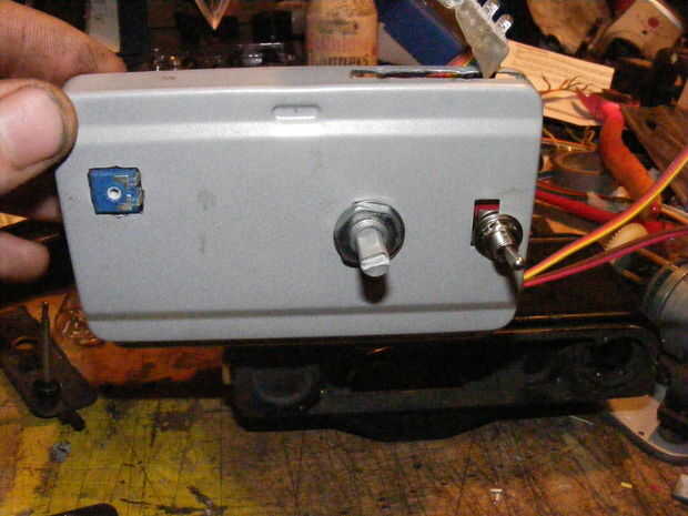una caja para las eléctricas es necesaria, un .wish de antorcha poundland había comprado un par. despojado y pegado a la espalda con algun pegamento fuerte ridículamente, estas cosas requieren calor para hacer más fuerte, he usado soplete intermitente al calor hasta se la ventaja de acelerar el secado del tiempo http://www.youtube.com/watch?v=Sz_2BL3ei6o utilizado una dremmel con fiberdisk, broca escalonada, archivo cuadrado y exprimidor de mano para hacer agujeros en la caja