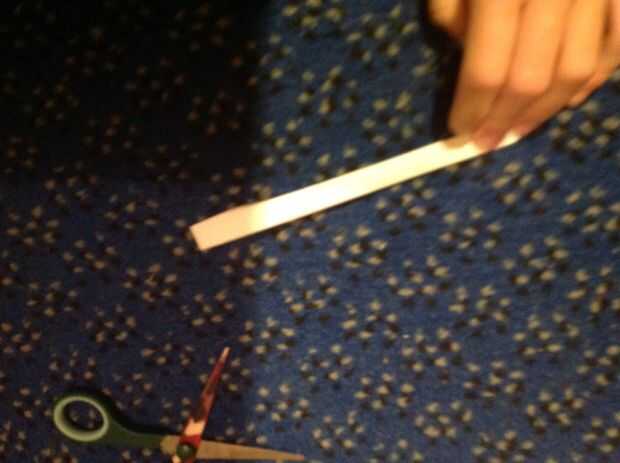 2. Tome el otro pedazo de papel y corte por lo que se trata de 1 o 2 cm más alto que la rana sí mismo.