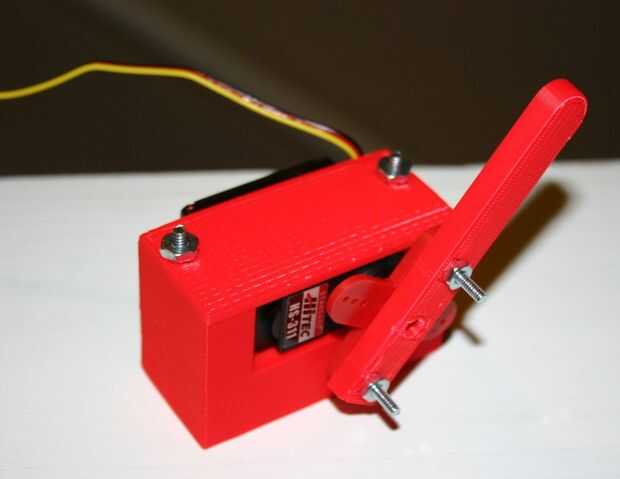 Imprimir una barra elevadora y pegar a la horn de servo.  Fije este conjunto al segundo motor servo (motor dentro de un soporte motor--también impreso).