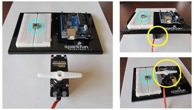 En este paso y el siguiente, el Motor Servo es probado por un cardán de cámara de eje.