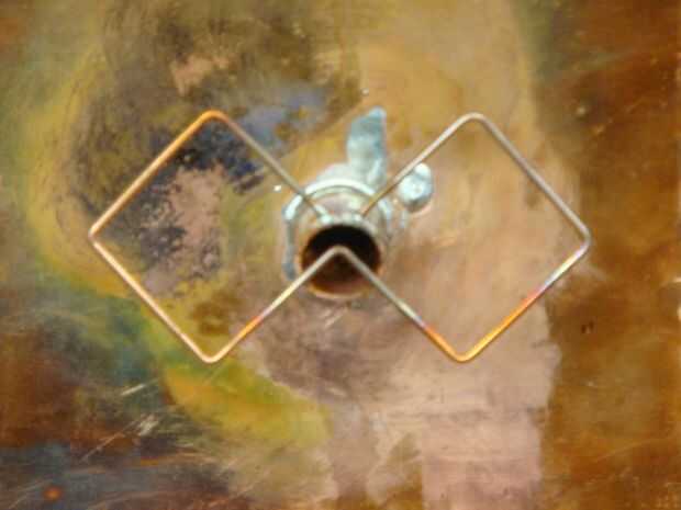 Tan pronto como se forma el elemento perfecto de la soldadura de los extremos abiertos en la parte alta de la tubería en el reflector. Medida y medida otra vez. Ir alrededor del borde exterior del elemento y asegúrese de que está apagado el reflector de 15-17mm. Mina fue de 15,5 mm todo después de unos ajustes.