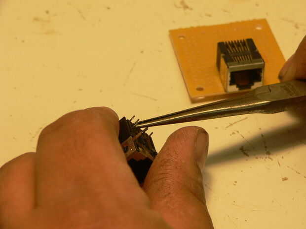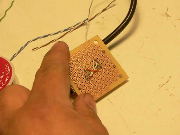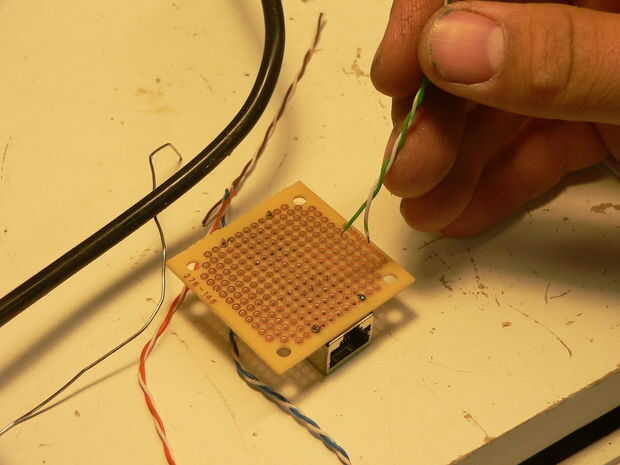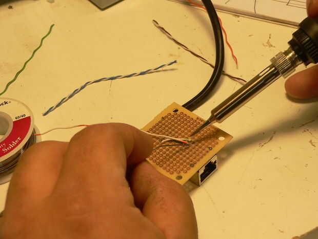 Luego soldar el conector de alimentación, par azul en positivo y par marrón en el plomo de negativas. Luego azul con rayas en el pin 5 y sólido en el pin 4, marrón a rayas en pin siete y sólido en pin ocho. Wiki de TIA/EIA-586-A si usted tiene alguna pregunta.