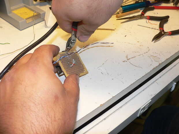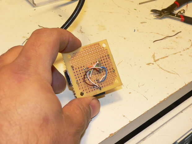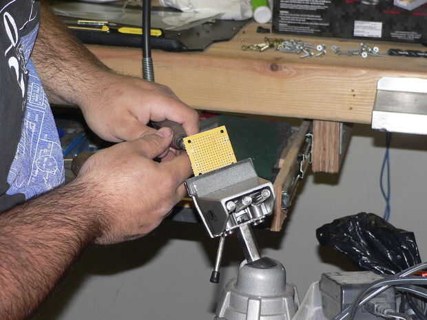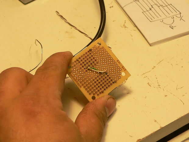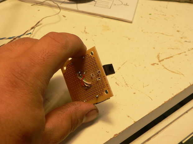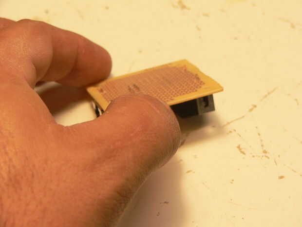 Luego perfore y montarlos en una pequeña placa PCB, he usado los pequeños cuadrados que Radioshack vende en pares por $2. Perforar y montar a la toma de corriente.