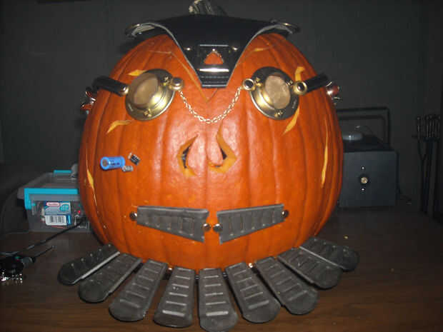 Aquí es una manera económica para convertir su cubo plástico calabaza de Halloween tras en una calabaza de Steampunk. Todo lo que necesitas es un par de cosas ahí en su propia casa y un poco de imaginación. No tienes que usar las mismas cosas que usé