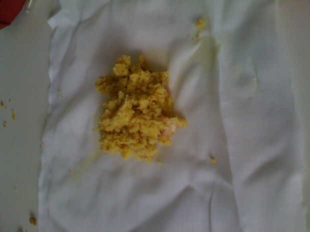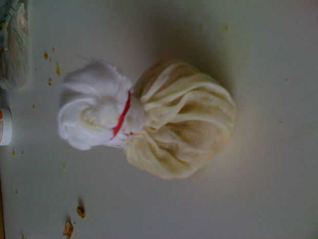 Añadir el jengibre (y si usted ha sido atrevido un poco de la ralladura de limón) en el cuadrado de tela de muselina. Junte las partes y asegure las esquinas en un paquete con la cinta elástica.