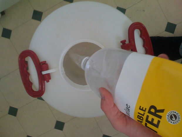 Agregar el azúcar al agua y revolver. He utilizado 400g (bueno, realmente he utilizado 800g porque estoy usando dos veces los ingredientes todos redondo)