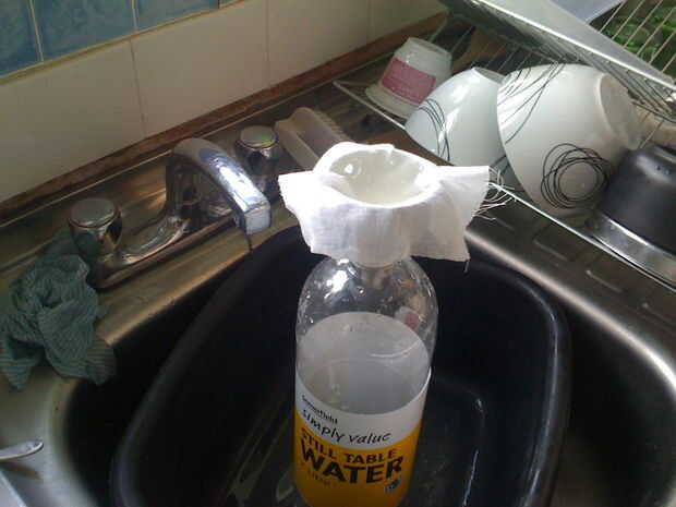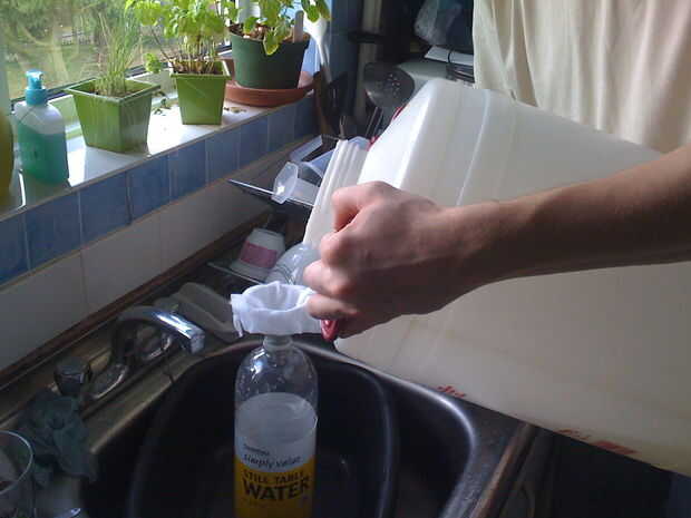 La parte importante no es llenar totalmente la botella, dejar un par de pulgadas en la parte superior vacía. Apriete la botella para que la cerveza de jengibre viene justo hasta el borde de la botella, luego ponga la tapa. Mientras la mezcla continúa a fermentar en su encimera gradualmente llenar con CO2 y pop la botella hacia fuera. Cuando la botella es difícil abrir la botella y dejar que la presión hacia fuera (con cuidado...) o meter en la nevera o alternativamente Repita el exprimir y si quieres una cerveza de jengibre seca. Mejor manera es seguir probando para asegurarse de que es potable.