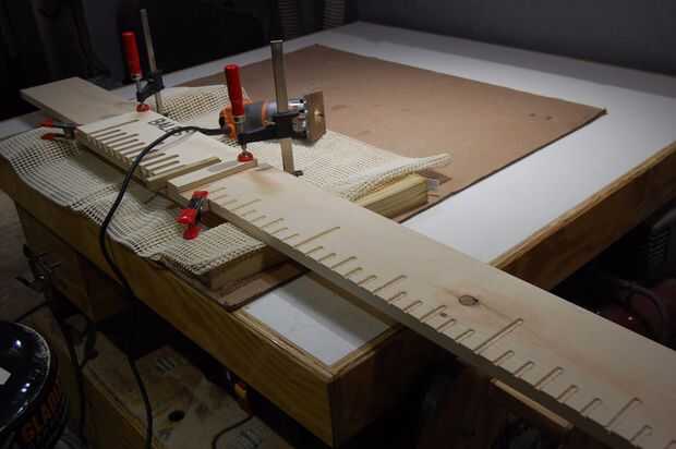 Los deslizamientos claves en el largo, ranura del final, que es el punto de solapamiento. Aplicar las pinzas y la ruta hacia fuera todos los surcos. Repita este proceso hasta que te quedas sin mesa.