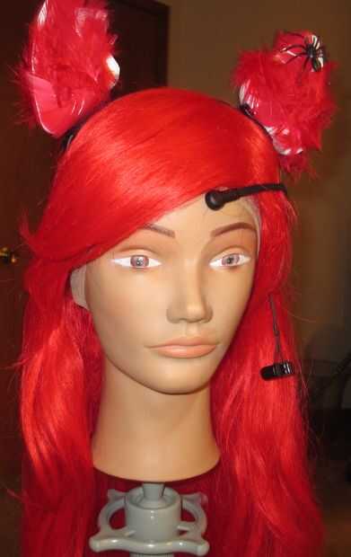 Ahora es el momento de colocar mi Foamies decorado en la parte superior del auricular antes de pase al estilo de pelo. Este es el tiempo que puedo hacer cualquier ajuste de último minuto antes de empezar a incorporar el auricular rojo peluca.