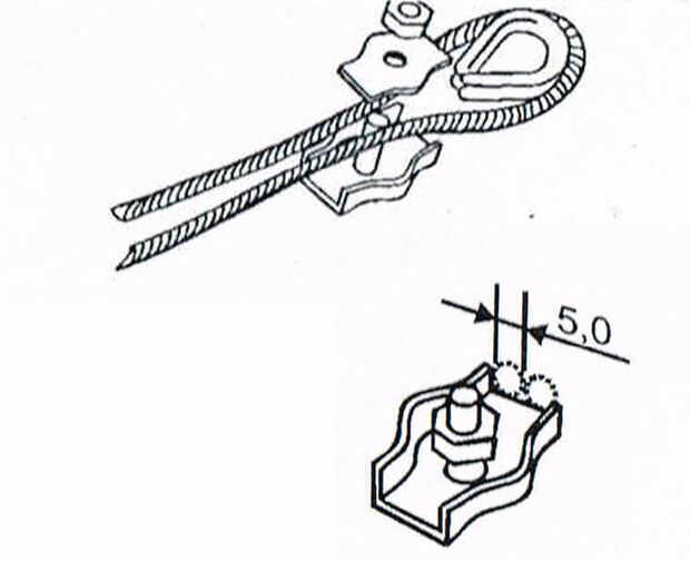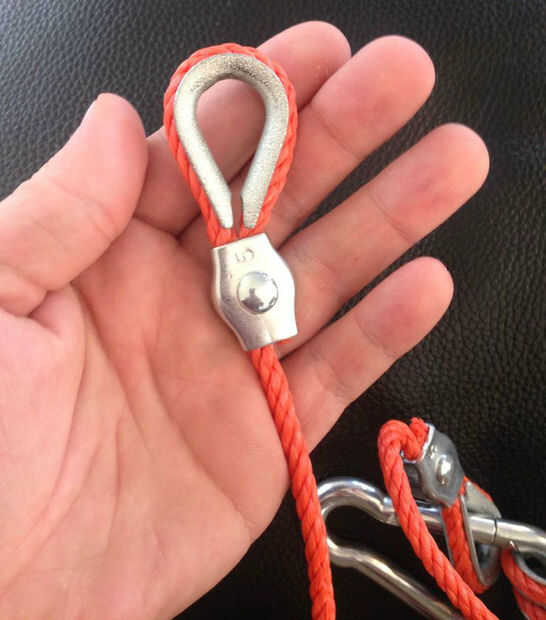 Tire de la cuerda alrededor de la asa de metal y coloque las dos cuerdas entre las abrazaderas.