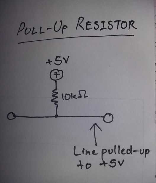 -En circuitos digitales, cualquier línea en el circuito puede ser tiró-para arriba a nivel alto (5V) usando un resistor de pull-up.