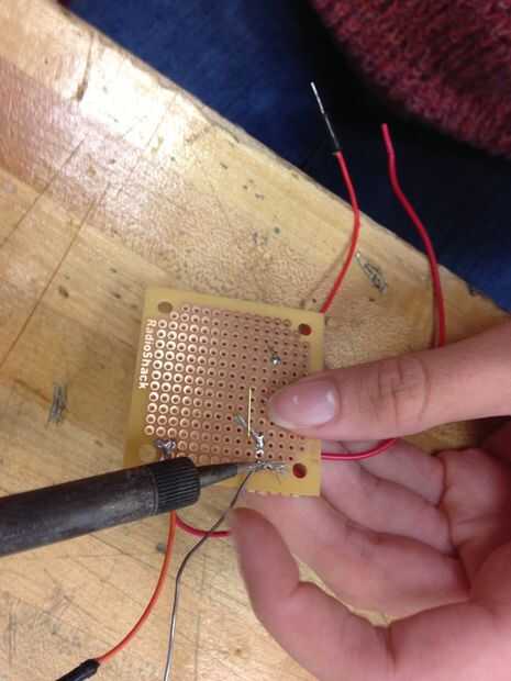 Después de que los cables de puente han sido soldados a la Junta Directiva del PT, el siguiente paso es soldar el sensor de la inclinación a la Junta.