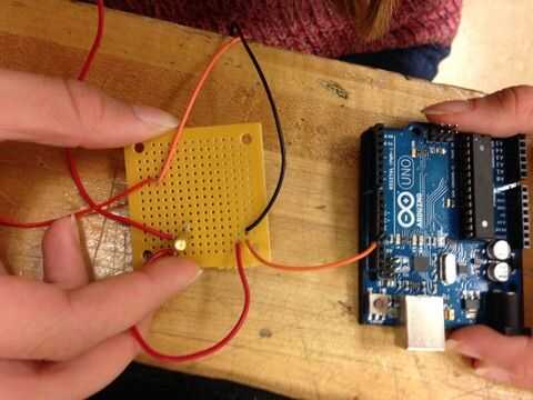 En este paso, usted tome los extremos de los cables de puente y enchúfelos en ciertos agujeros de la placa Arduino. La ubicación de los cables es específico e importante.