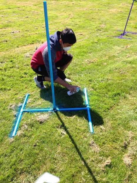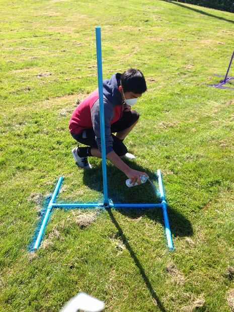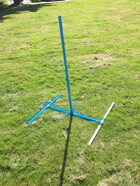 Construir una base de tubo de PVC. Para hacer este tres uniones de 3 vías donde puede conectar los tubos de PVC. Una vez haya conectado que se vean como los de los cuadros, pintura de aerosol les a cualquier color que gustaría hacer más agradable estéticamente.