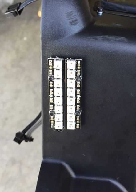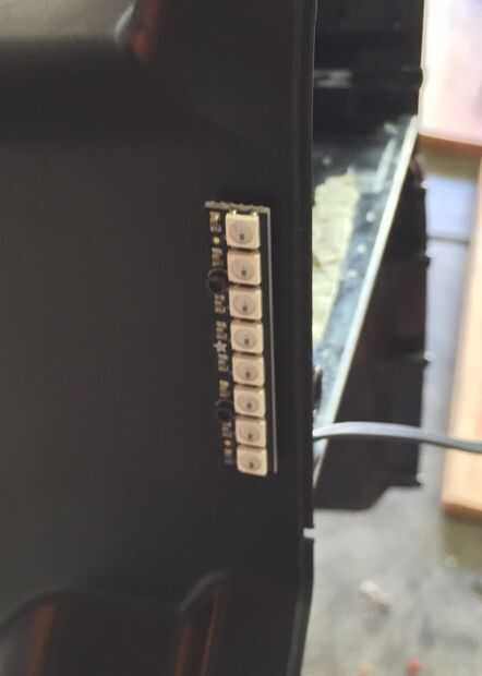 Las luces traseras son una tira de solo 8-Neopixel y fueron montadas de la misma manera como los faros y con su propio cable de alimentación/datos 3 pines JST.