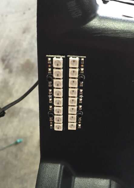 Para hacer el montaje de PCB de Neopixel más seguro y a prueba de polvo/playa, empleado la ayuda de material de bricolaje milagro, Sugru. Limpié las superficies con un paño con alcohol y aplicar Sugru negro como un cilindro largo enrollado (como arcilla o plastilina) a los bordes de la placa y cable rutas de agujeros. Presione firmemente para conseguir buena adherencia contacto y dejar curar durante por lo menos unas horas (preferible durante la noche) antes de continuar. He añadido una pequeña cantidad de Sugru a la parte trasera (interior) en el cable de alivio de tensión, ya que nos va ser doblarlo en un ángulo agudo una vez que la batería está en el lugar.