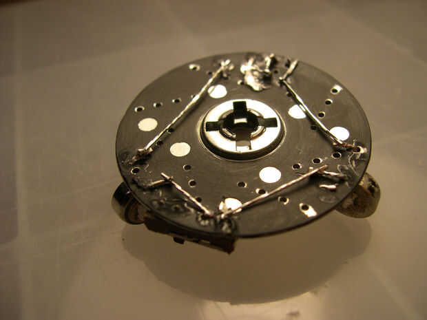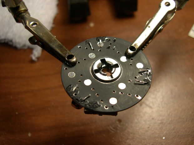 Coloque el disco con todas las piezas en sus manos como se muestra en la imagen, si no tienes que ayudar a los ricos (conseguir algo) o encontrar la forma para sostener la pieza en su lugar.