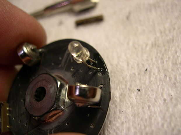 El interruptor será en el exacto enfrente de lado de su LED. El interruptor dependerá de su conmutador. Mina se coloca horizontalmente pero sugiero colocarlo verticalmente si no es para largo. Tenga en cuenta que necesita para mantener espacio en el centro de la rueda de ajuste sobre la impulsión hexagonal.