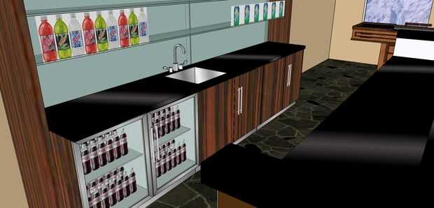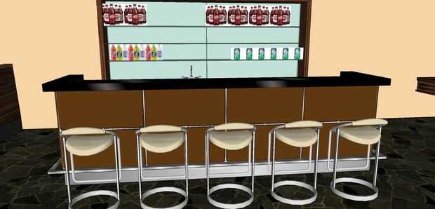 El bar es fantástico para coger para arriba con amigos sobre un refresco. La encimera está hecha de granito de alta calidad por lo que los objetos calientes no dañen la superficie. Las sillas de eslabón giratorio para la diversión y fácil giro. Las estanterías cuentan con los mejores refrescos. Hay un lavabo para enjuagar vasos, y el refrigerador debajo del mostrador iluminado mantiene vasos y bebidas frías.